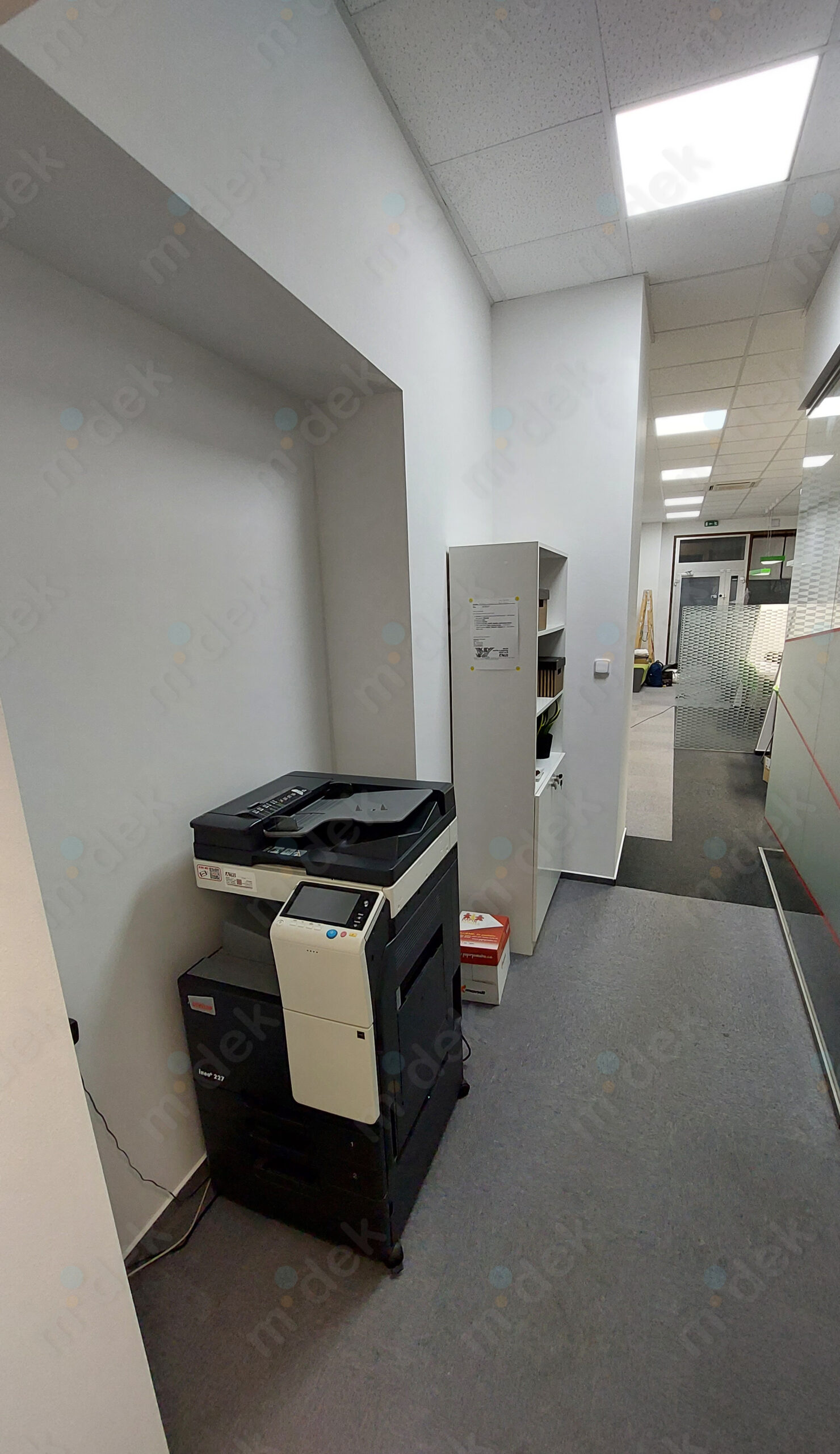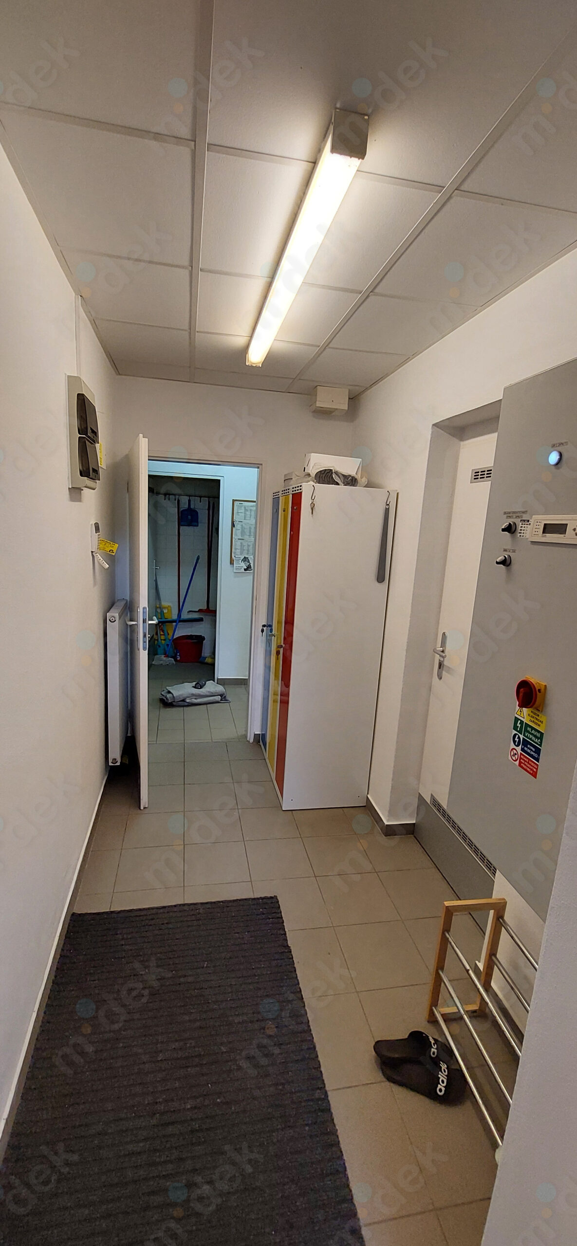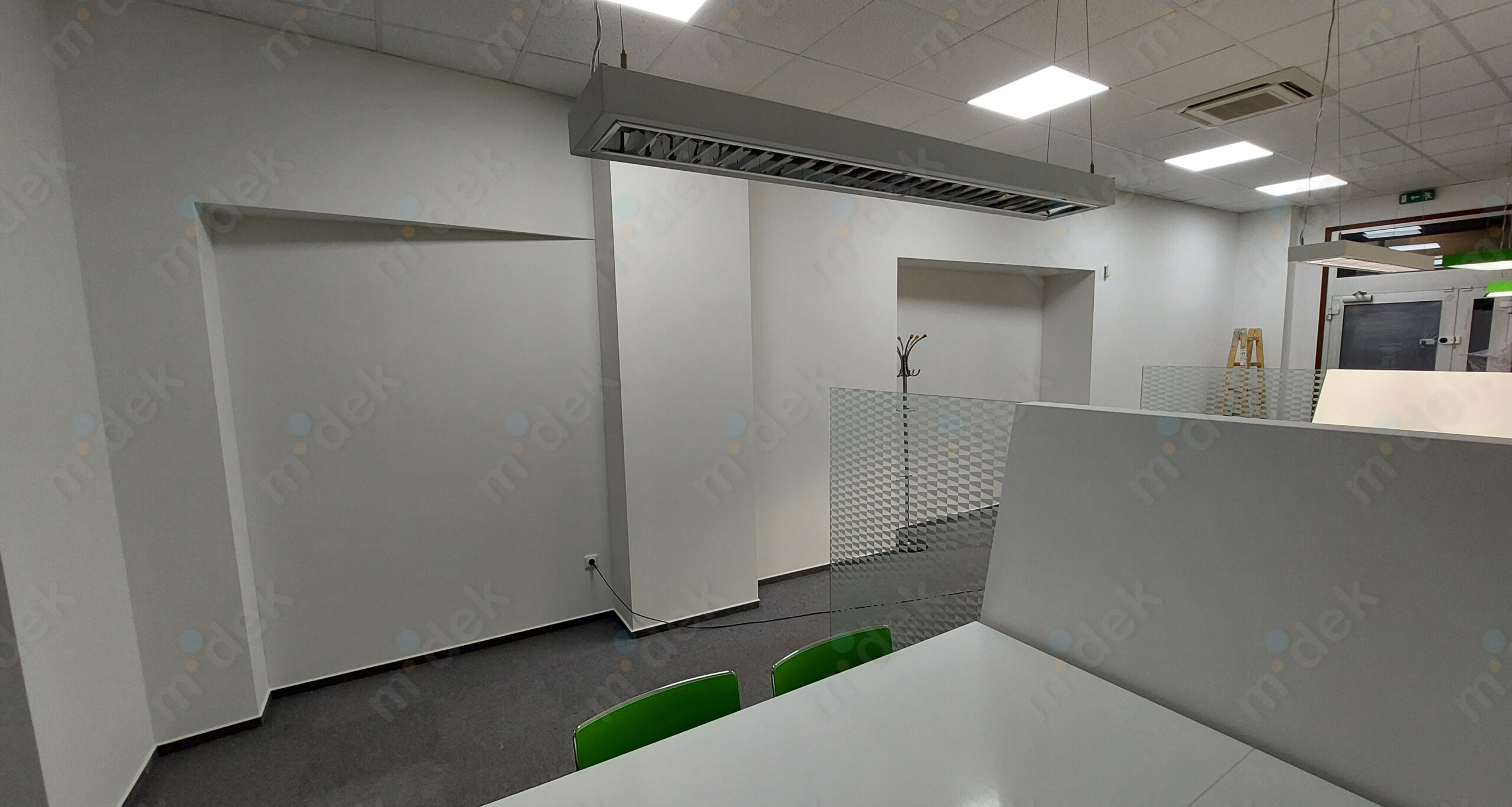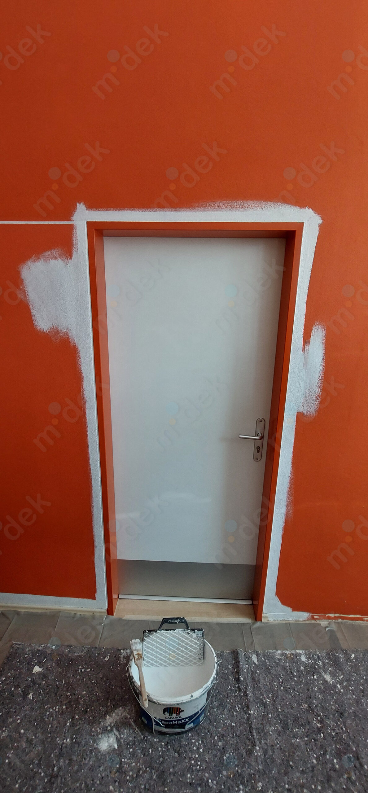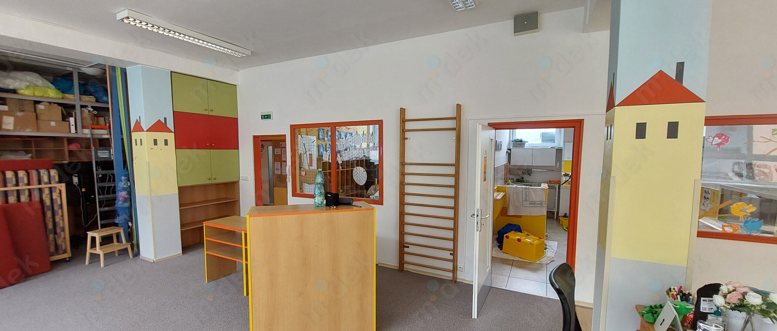 Zakrytí podlah, penetrace, lokální opravy omítek, obnovení magnetické barvy na jedné stěně, 2 vrstvy akrylátové barvy, úklid.